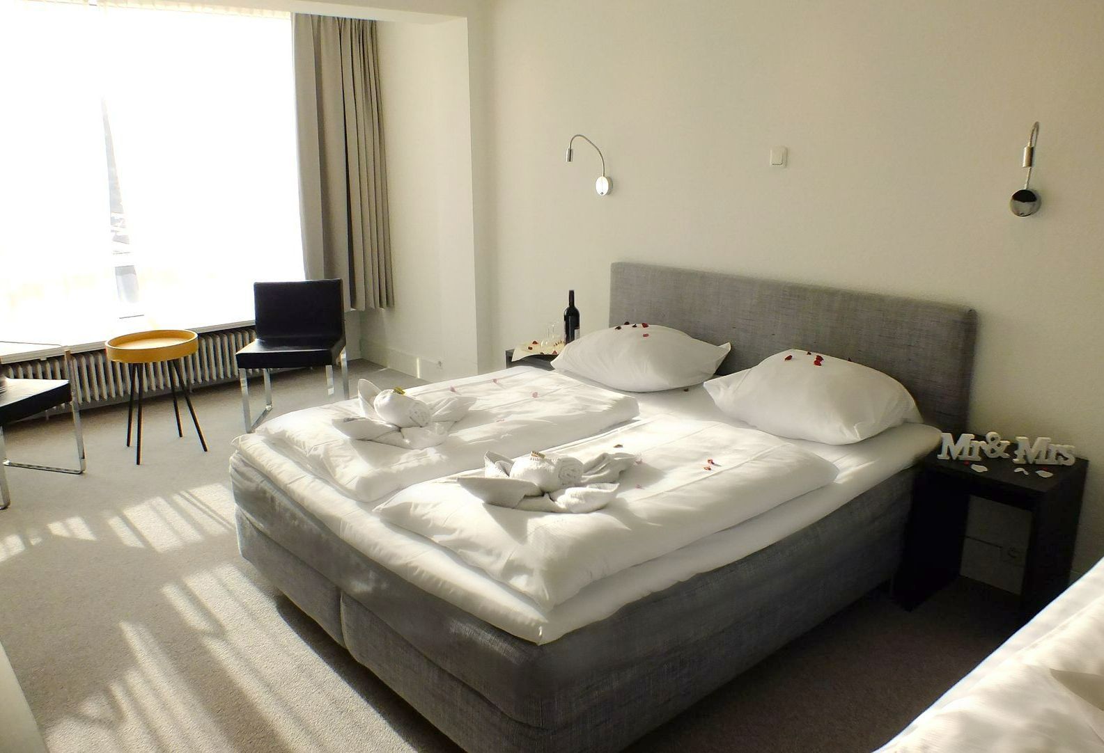 Die Komfortzimmer zur Bergseite ohne Balkon verfügen über ein Eastborn-Boxspringbett, einen LCD-Fernseher und eine gemütliche Sitzecke mit zwei Stühlen und einem Tisch. Die Badezimmer sind mit Dusche, WC, einem oder zwei Waschbecken und einem Haartrockner ausgestattet.